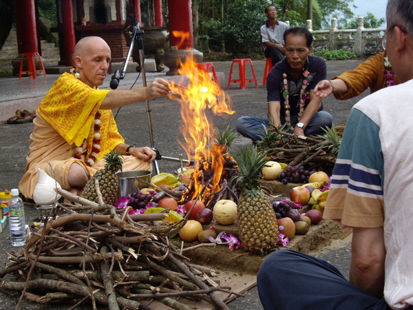 火祭由一位【國際奎師那學會】的祭師主持。【國際奎師那學會】代表印度古代的瑜伽傳統形式,其講授的依據就是韋陀經典。