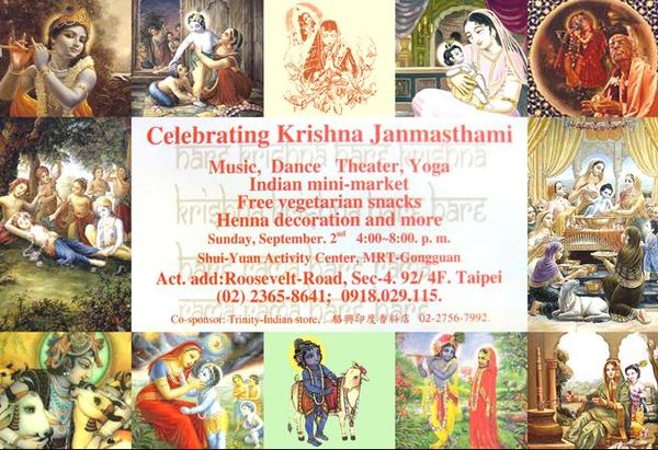 The birthday anniversary of Krishna, the famous speaker of Bhagavad-Gita, is celebrated in places throughout the world, including Taiwan.
