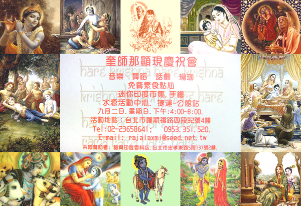 請與台北奎師那意識協會(ISKCON)聯絡,