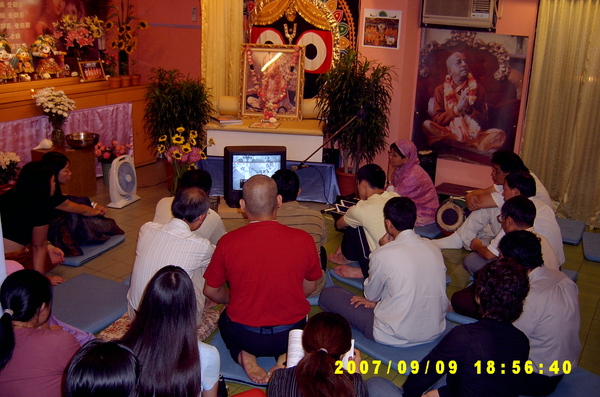 Celebrated Birthday of Srila Prabhupada Devotees were listening to a speech of Srila Prabhupada